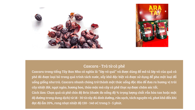 Việt Nam là nước xuất khẩu cà phê hàng đầu thế giới, do đó trên thị trường hiện có vô vàn thương hiệu cà phê nội địa. Dù vậy, nhưng người Việt vẫn chưa thật sự có nhiều lựa chọn khi muốn thưởng thức những tách cà phê chất lượng hảo hạng, chân thực, tử tế. Với mong muốn mang đến cho người tiêu dùng thức cà phê chất lượng cao, Hợp tác xã Ara-Tay Coffee ở bản Lọng Nghịu, xã Chiềng Chung (huyện Mai Sơn, tỉnh Sơn La) đã cho ra đời sản phẩm Cà phê Ara-Tay.